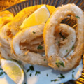 €17.00Huisgepaneerde inktvisringen, sausje van Wasabimayonaise