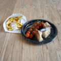 €16.00Krokant gefrituurde kip op een stokje, met een sausje van hoisin