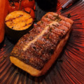 €19.00Dun gesneden zalmreepjes, afgewerkt met een sausje van passievrucht, limoen en aji amarillo.