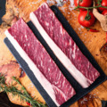 €30.00De Bife de Tira is een in de lengte gesneden snit uit de dunne lende. Vergelijkbaar met een hele entrecote, maar dan over de lengte is gesneden. Deze snit is enorm populair in Brazilië en zorgt ervoor dat er perfect tegen de draad in gesneden kan worden na bereiding. Afkomstig van runderen op de Uruguayaanse vlaktes.